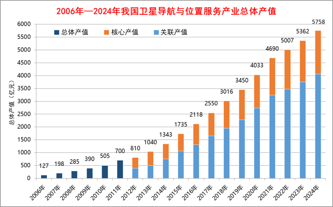 2025年5月18日,中国卫星导航定位协会发布《2025中国卫星导航与位置服务产业发展白皮书》。白皮书显示,2024年我国以北斗为核心的卫星导航与位置服务产业总体产值达到5758亿元人民币,同比增长7.39%。