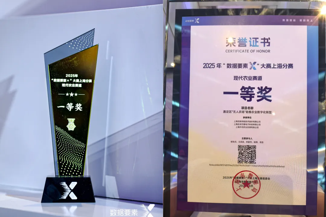 8月24日,2025年“数据要素×”大赛上海分赛在沪落幕。上海司南导航技术股份有限公司(下称“司南导航”)申报的“嘉定区‘无人农场’助推农业数字化转型”项目,从600余个参赛项目中脱颖而出,荣获一等奖。