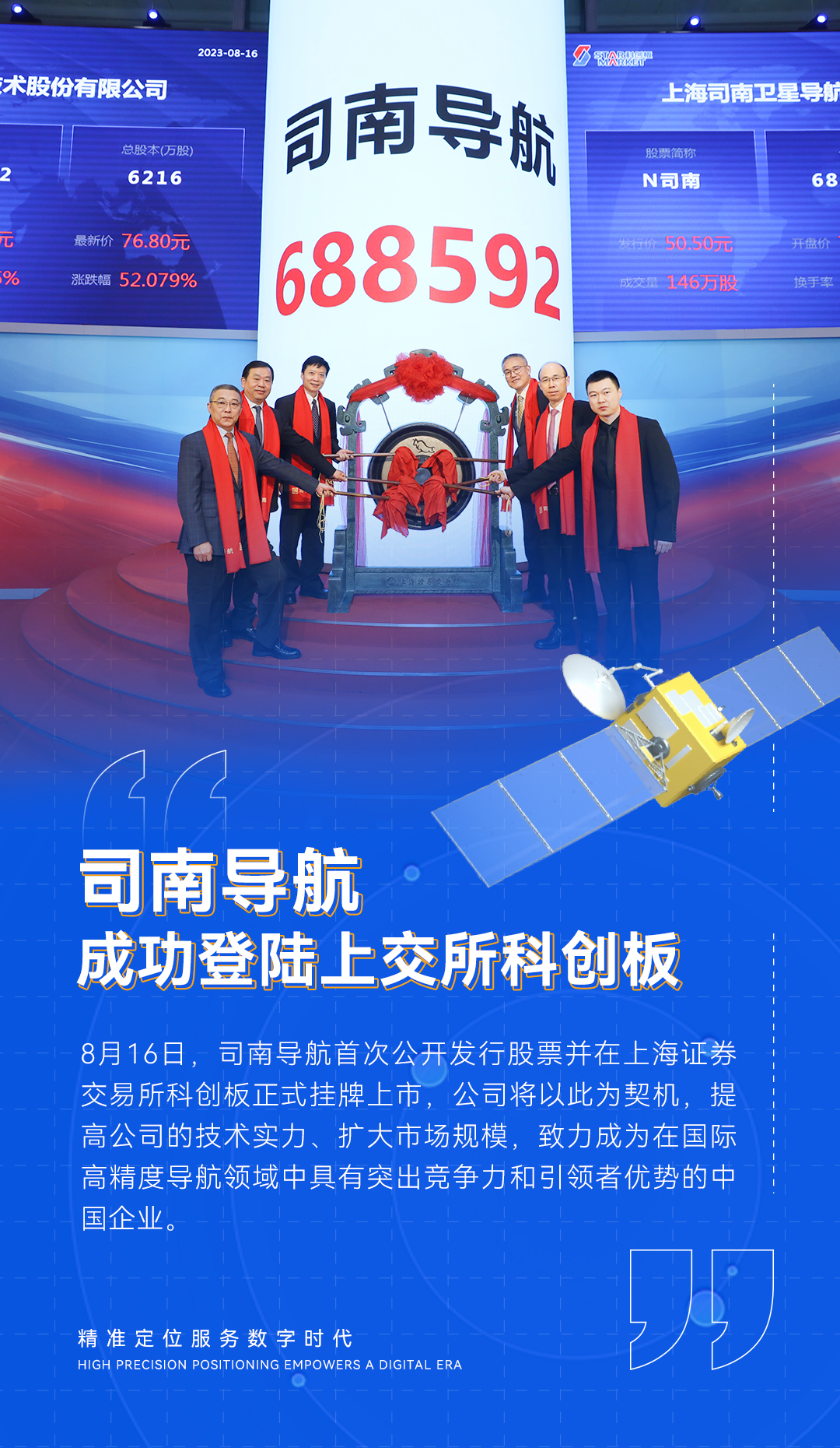 由司南导航牵头制定的国家标准《北斗/全球卫星导航系统(GNSS)高精度片上系统(SoC)技术要求及测试方法(标准号:GB/T 42576-2023)》正式发布,团体标准《北斗地基增强系统基准站接收机性能要求及测试方法》获评2023年“上海标准”。