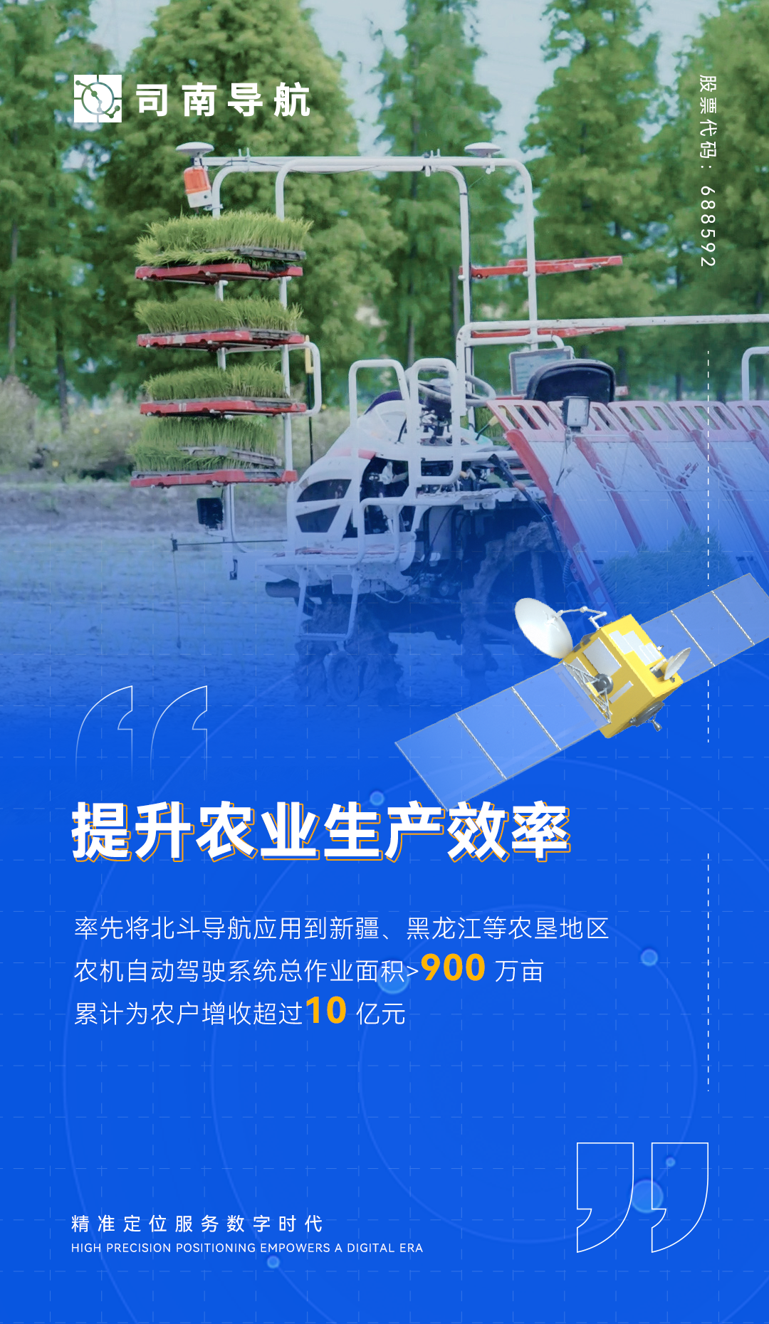 ——这是转型升级的探索之年。司南导航基于自身的技术优势,推动自动驾驶、智慧农业、智能化港口、数字化施工、人员安防、安全监测、低速机器人、无人机等新兴产业与北斗、5G、物联网、大数据、人工智能等数字前沿技术深度融合,赋能传统产业“数字化”转型。