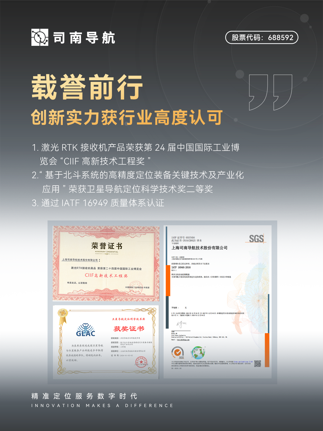 在“十四五”规划深入实施、产业转型升级步伐加快的决胜之年,司南导航始终不断强化创新驱动,着力推动高质量可持续发展,取得了诸多行业瞩目的成就,以创新实力赢得市场认可。