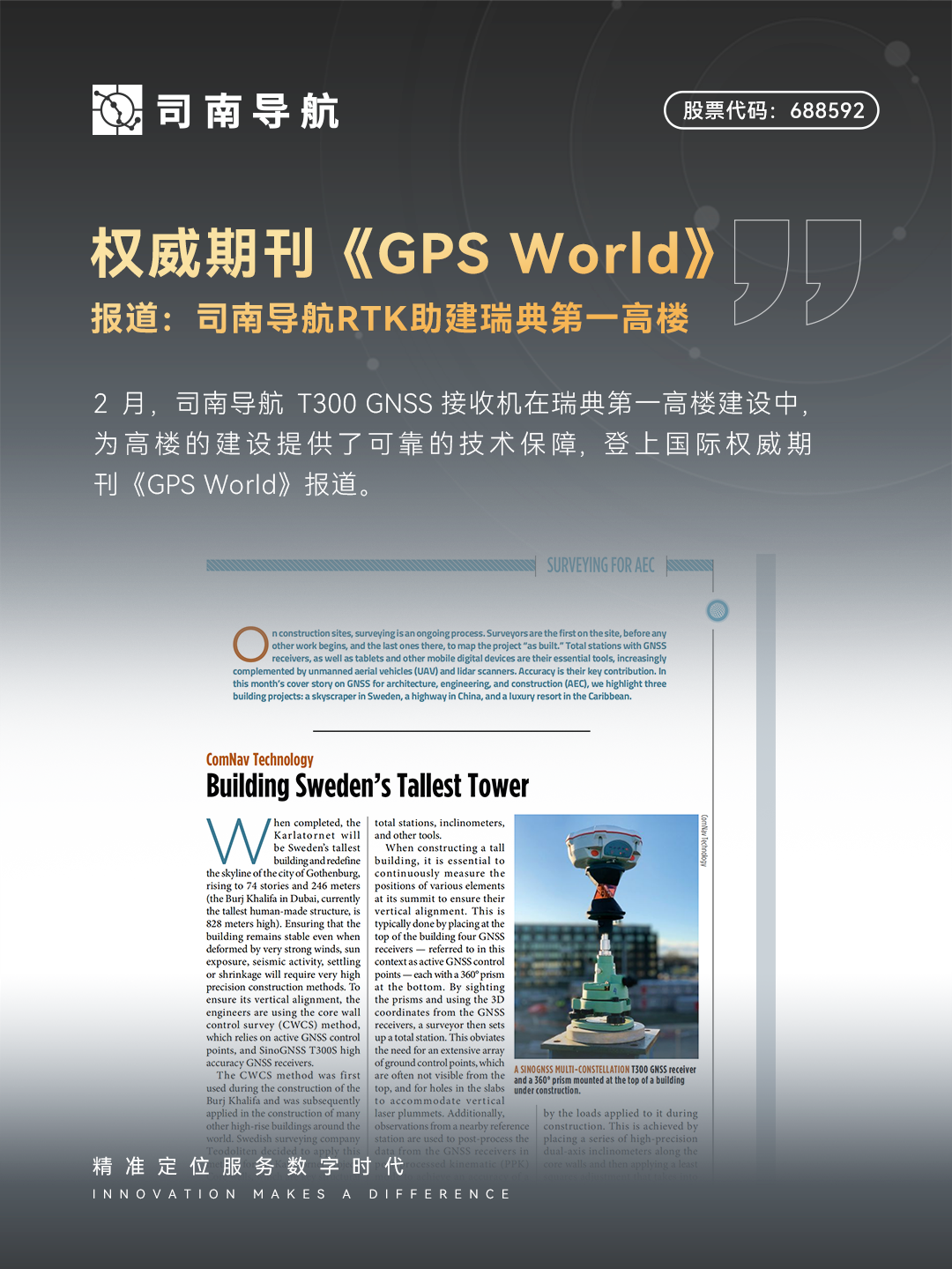 —— 继2022年N3惯导RTK登上该期刊封面,2023年农机导航系统获其专栏专版报道之后,司南导航连续第三年登上国际权威期刊《GPS World》。