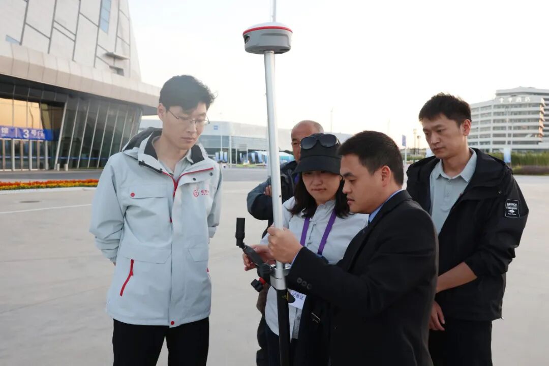 工作人员为央视记者演示Lu8激光双摄RTK