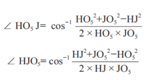 从工作装置结构图,可得动臂关节角计算公式为: