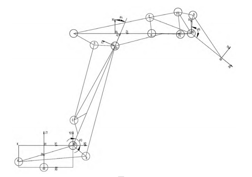 2.1工作装置的结构及坐标系的建立