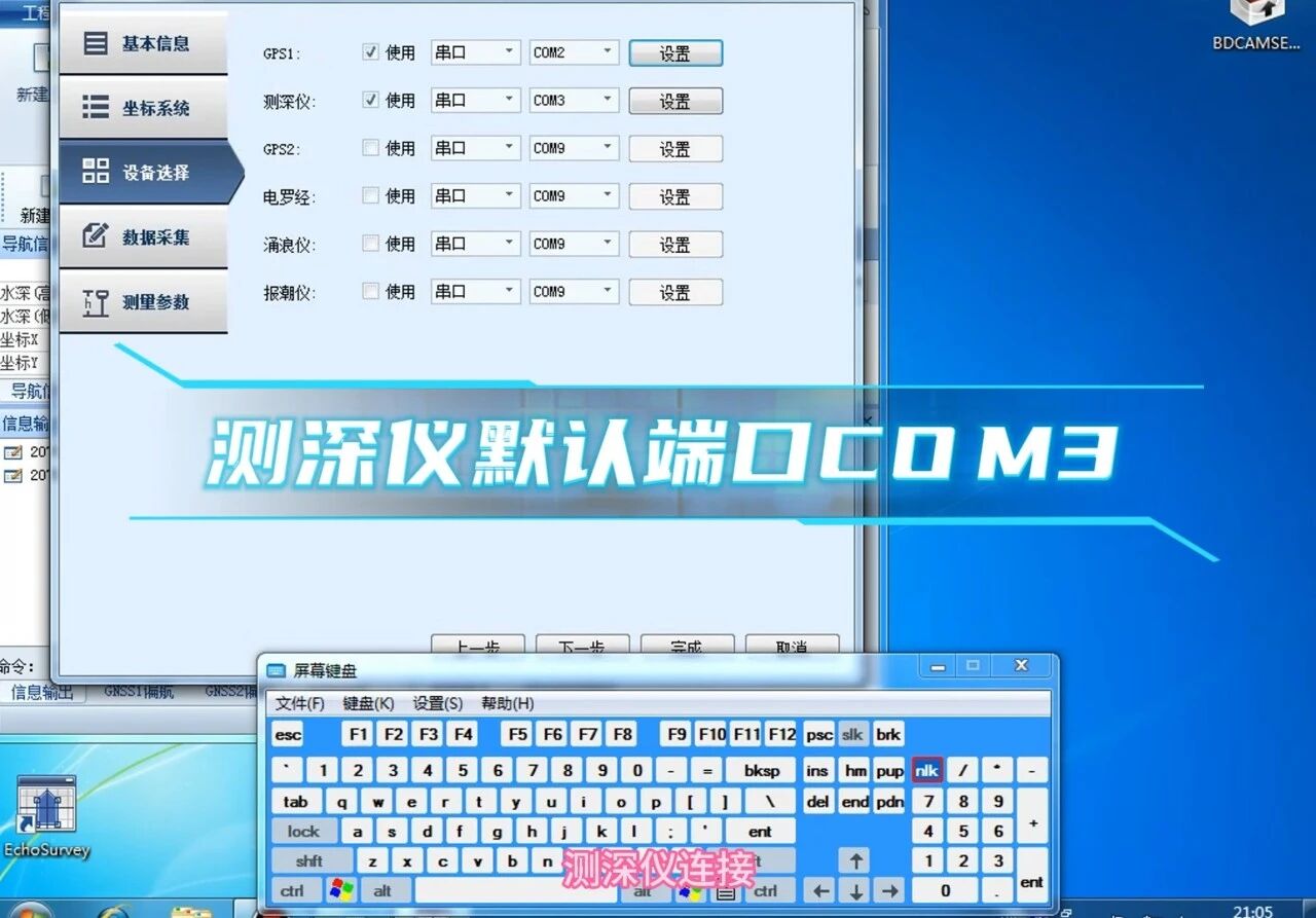 • 将 RTK 与测深仪主控连接,主控有COM1和COM2 接口,接入 COM1 即可