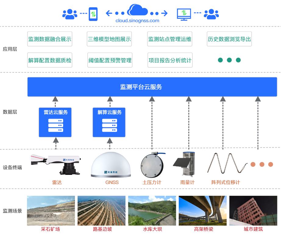 GNSS 设备的数据特点:输出绝对位移(基于全球坐标系的坐标变化),可直接用于评估边坡变形对周边结构的实际影响,同时能为雷达数据提供 “绝对参考基准”。