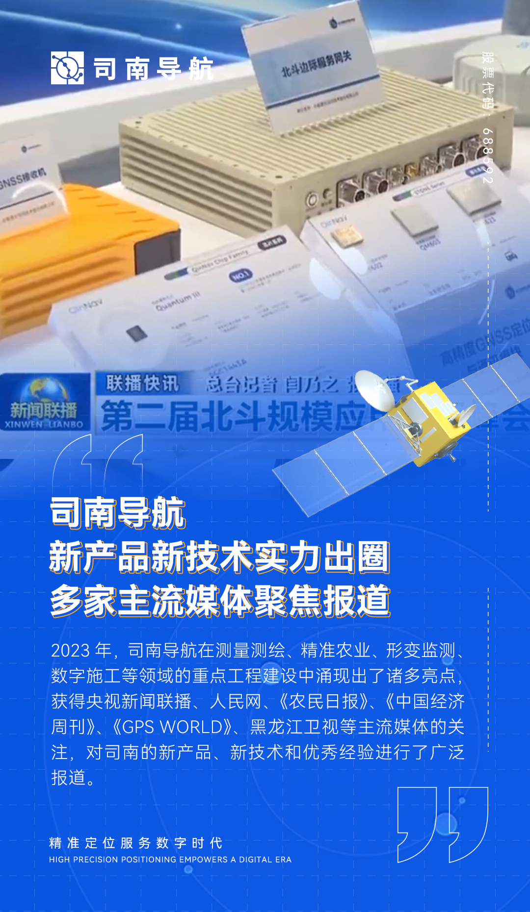 ——这是实力出圈的向上之年。2023年,司南导航在测量测绘、精准农业、形变监测、数字施工等领域的重点工程建设中涌现出了诸多亮点,获得央视《新闻联播》、《人民日报》、《农民日报》、《中国经济周刊》、《GPS WORLD》、黑龙江卫视等主流媒体的关注,对司南的新产品、新技术和优秀经验进行了广泛报道。