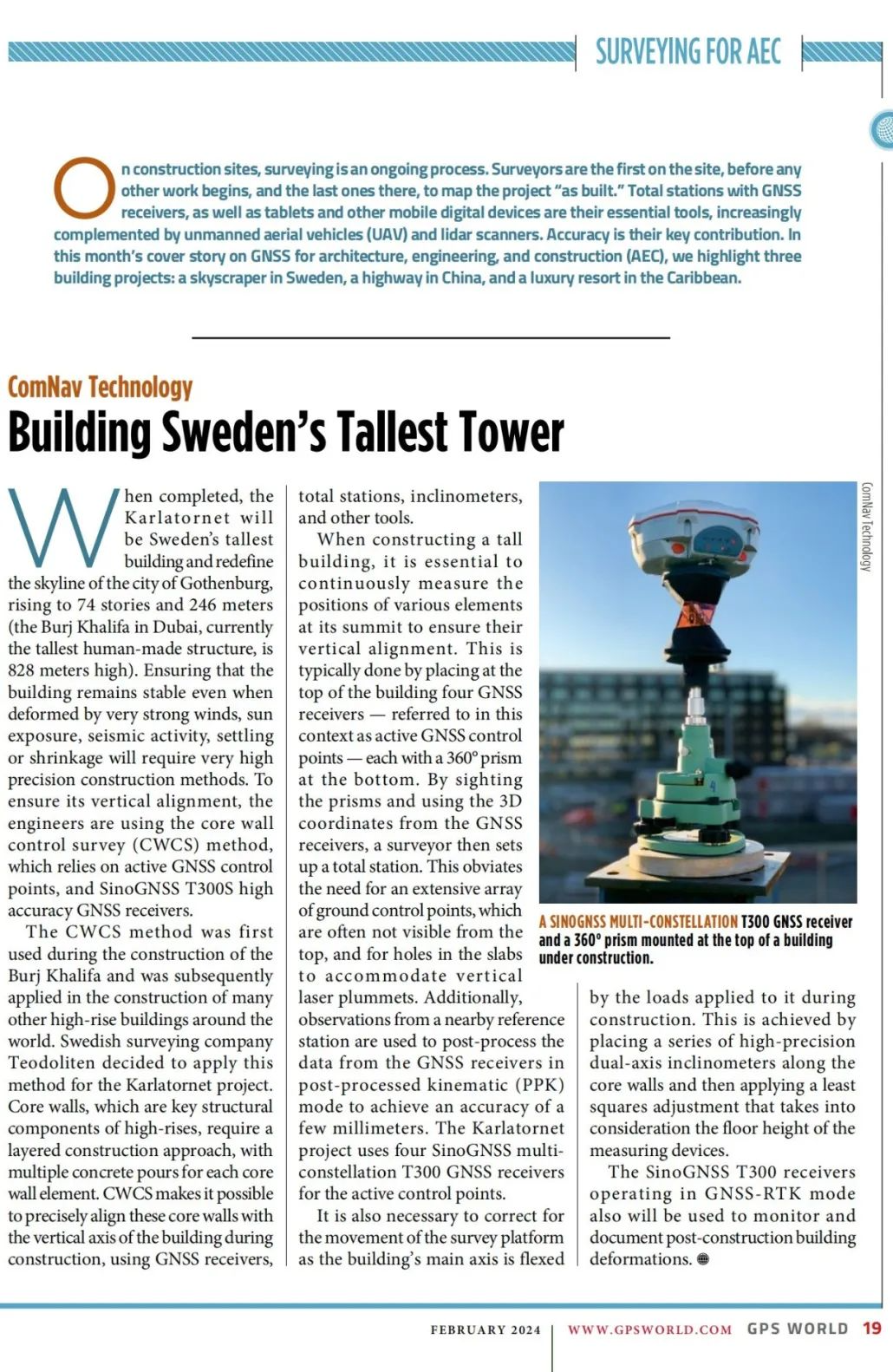 再登《GPS World》!聚焦司南导航RTK助建瑞典第一高楼