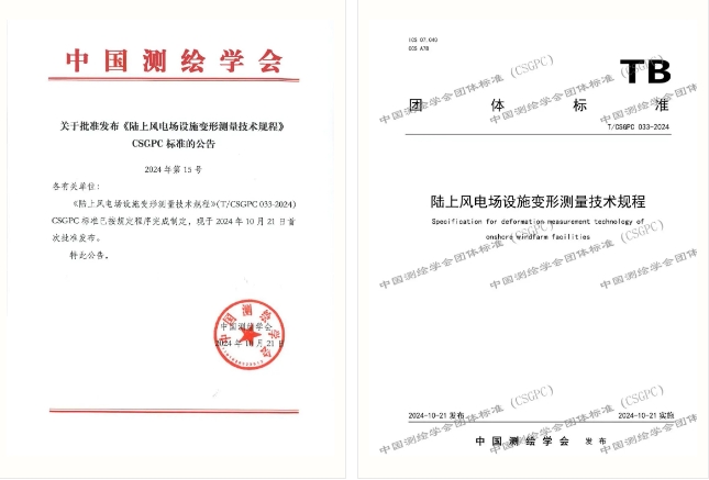近日,由上海司南导航技术股份有限公司主要起草的《陆上风电场设施变形测量技术规程》(T/CSGPC033-2024) 经中国测绘学会批准发布,该规程为陆上风电场设施变形测量提供了系统、科学的技术指导,标志着风电设施安全管理迈上新台阶。