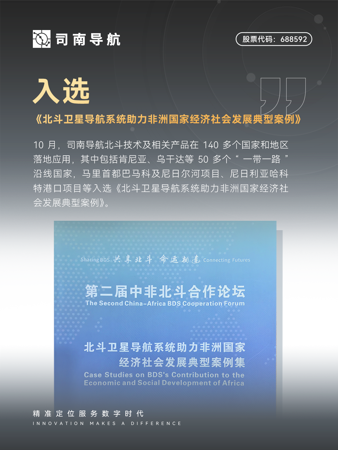 —— 助力非洲国家现代化铁路、高速公路、地基增强网、医院等基础设施建设,作为非洲经济发展的重要参与者和贡献者,入选《北斗卫星导航系统助力非洲国家经济社会发展典型案例》。