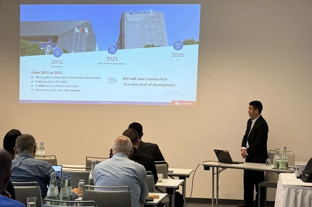 展会期间,司南导航2024年度海外代理商大会隆重举行,来自德国、韩国、日本等国家的经销伙伴欢聚一堂。董事长王永泉博士、海外业务部总监彭海明出席会议并介绍公司全球化发展的战略。会上,司南导航推出了新一代高精度定位芯片、激光RTK新品、SLAM、无人船、XE100数字施工产品、AG501 Pro农机自动驾驶系统等测量测绘、精准农业、机械控制一系列应用领域的新产品和新技术,充分展示了司南导航的研发创新成果以及与海外合作伙伴共谋发展新机遇的决心。