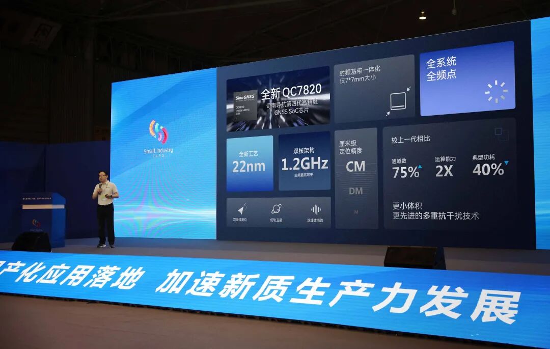 本届展会,司南导航首次展出了第四代自研高精度芯片:全系统全频点射频基带一体化高精度GNSS SoC芯片QC7820。
