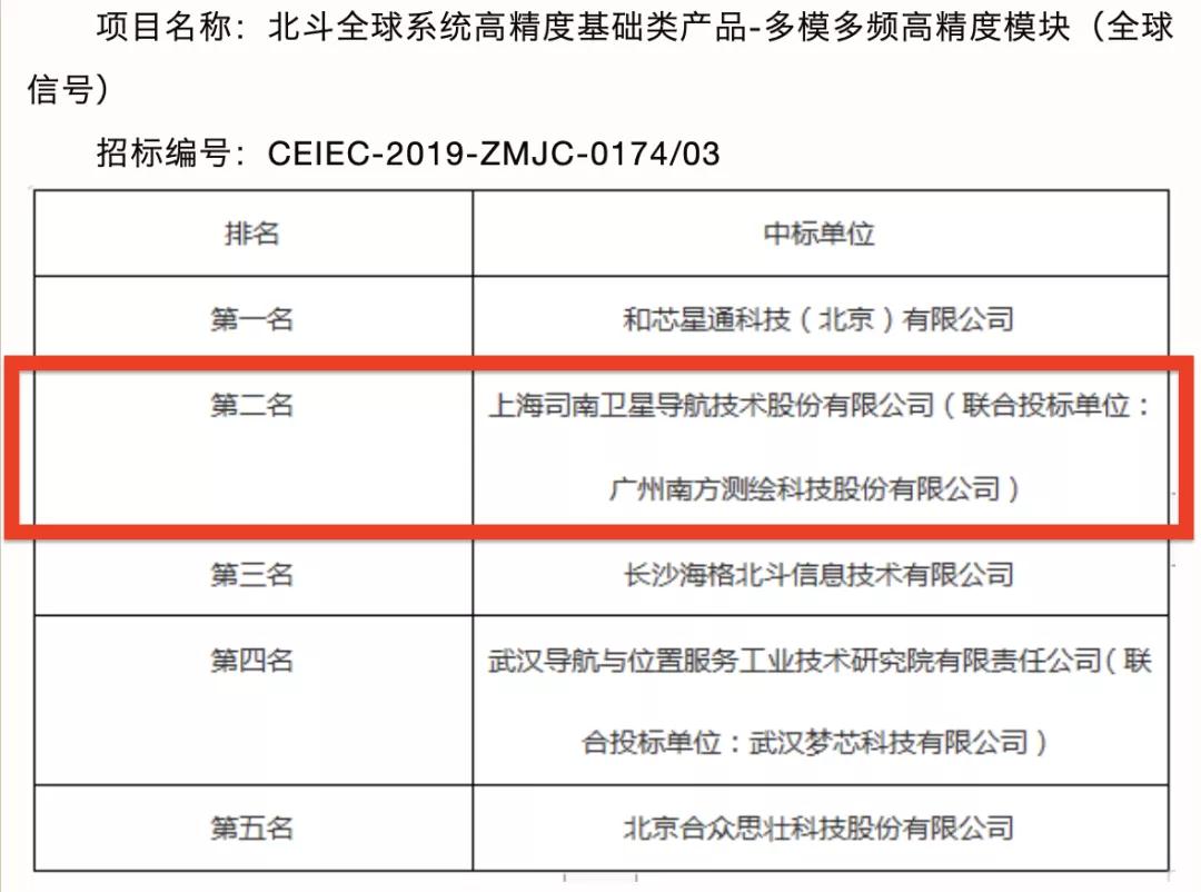 芯片、模块、天线是高精度产业链条里的核心部件,也是北斗全产业链的技术制高点。综合此前已经公示的两项比测结果,司南导航是唯一一家在三项基础类产品比测中均以排名前二的成绩中标的企业。
