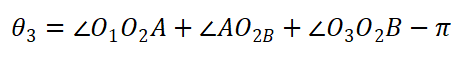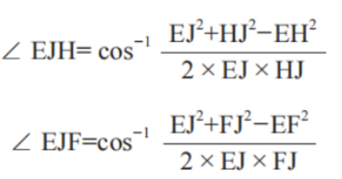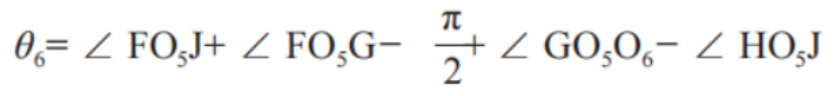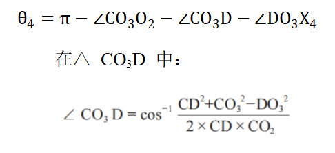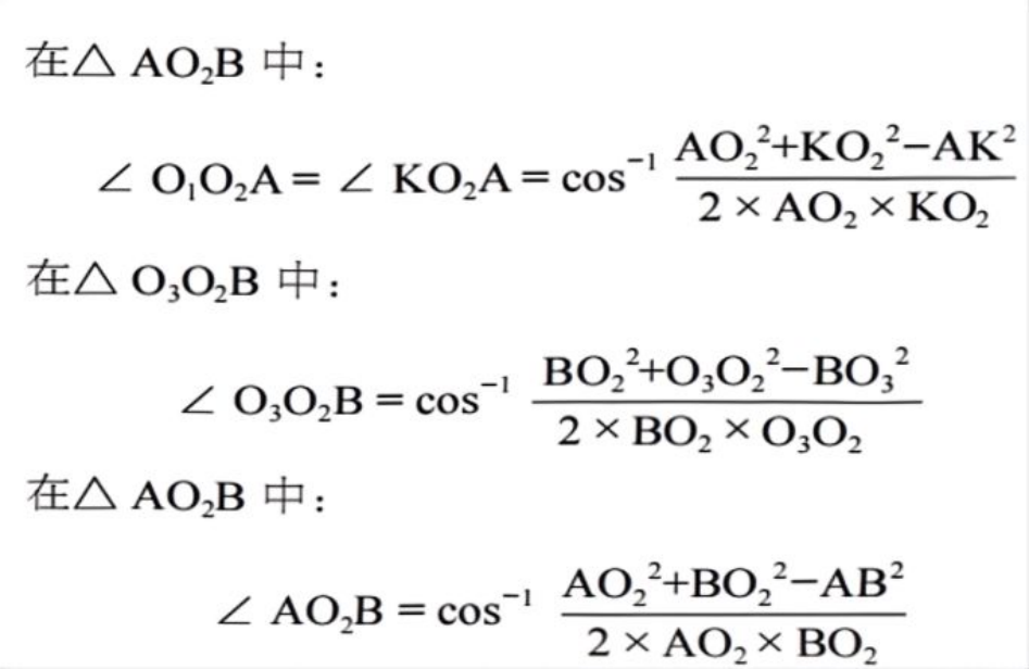 从工作装置结构图,可得动臂关节角计算公式为: