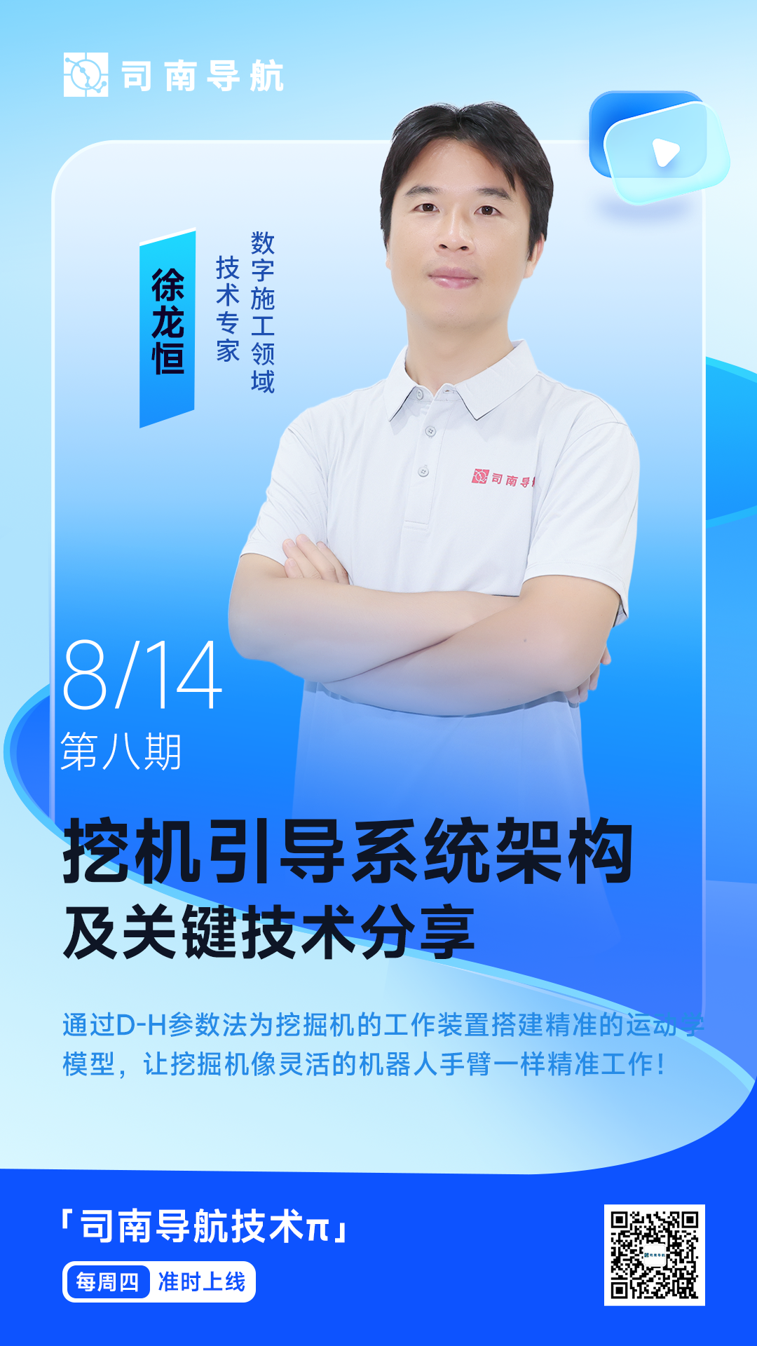 本期「司南技术π」聚焦于挖机引导系统架构及关键技术,通过建立模型,分析计算油缸位移长度到 D-H 参数的变换关系,确定运动链关节变化,最后绘制工作的作业图,让挖掘机的动臂、斗杆、伸缩臂、铲斗精准运作。
