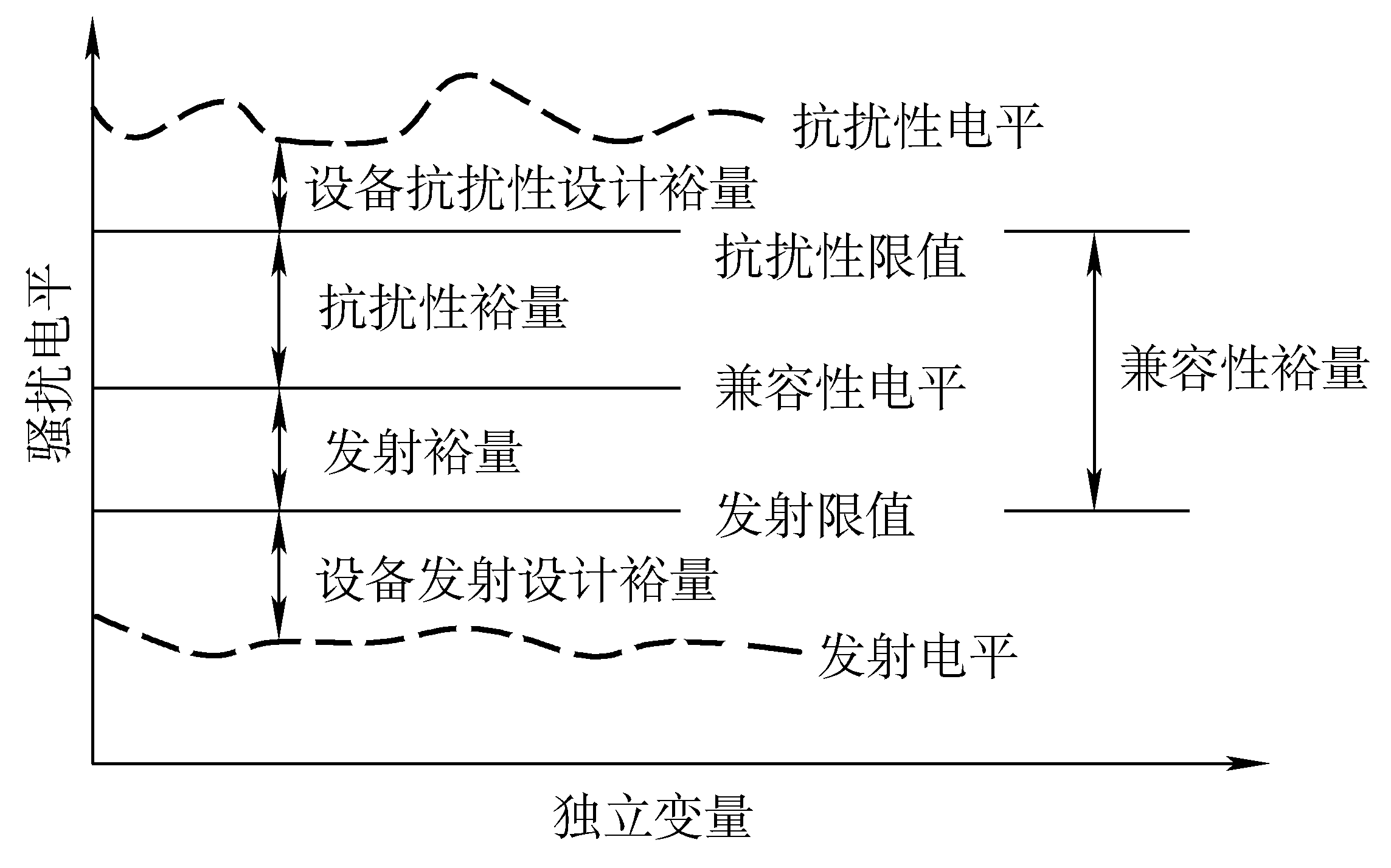 上述三个定义虽然措辞不同,但都可概括为两个方面:(1)设备或系统承受电磁骚扰时,能正常工作;(2)设备工作时,不产生超过规定值的电磁骚扰。